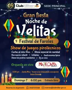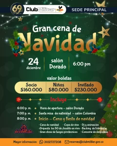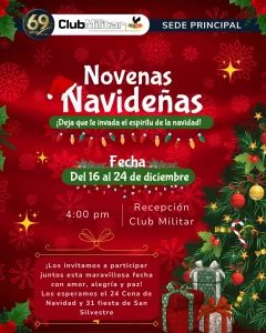 El Club Militar invita cordialmente a todos sus socios y familias a participar en las Novenas de Navidad, que se llevarán a cabo del 16 al 24 de diciembre de 2026 en nuestras sedes.