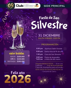 La Navidad y el fin de año merecen celebrarse en grande, y en el Club Militar tenemos preparados dos eventos imperdibles para nuestros socios y sus familias: la Gran Cena de Navidad y la tradicional Fiesta de San Silvestre 🥂